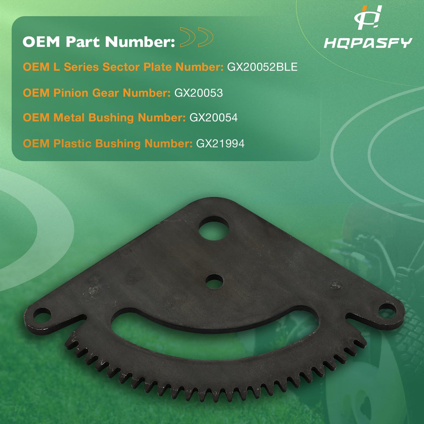 Q: What John Deere models are compatible with the HQPASFY Steering Sector Pinion Gear Rebuild Kit?A: The HQPASFY Steering Sector Pinion Gear Rebuild Kit is compatible with several John Deere models, including L105, L108, L110, L111, L118, L120, L130, and G110 lawn tractors.