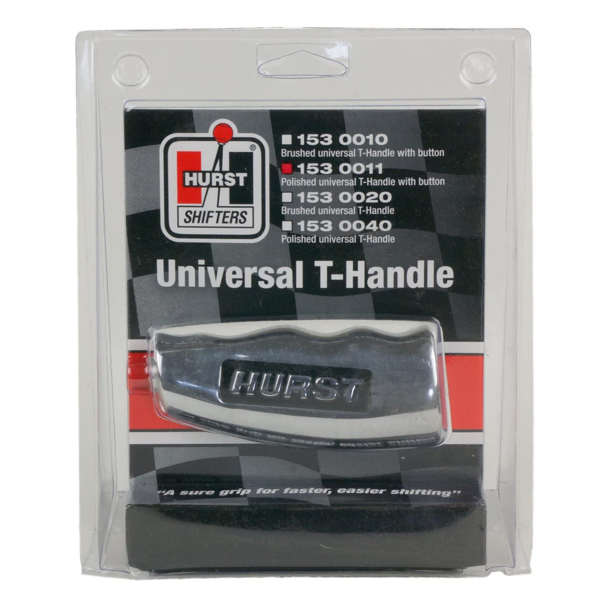 Hurst polished t-handle with button and 12 Volt switch allows you to control a Roll Control, nitrous or other accessory directly from your shifter handle. Polished aluminum finish and bold Hurst identification adds a stylish touch to your race shifter. Fits SAE 3/8, 7/16, and 1/2 in. threads. Also fits metric 10, 12, and 16 mm threads.