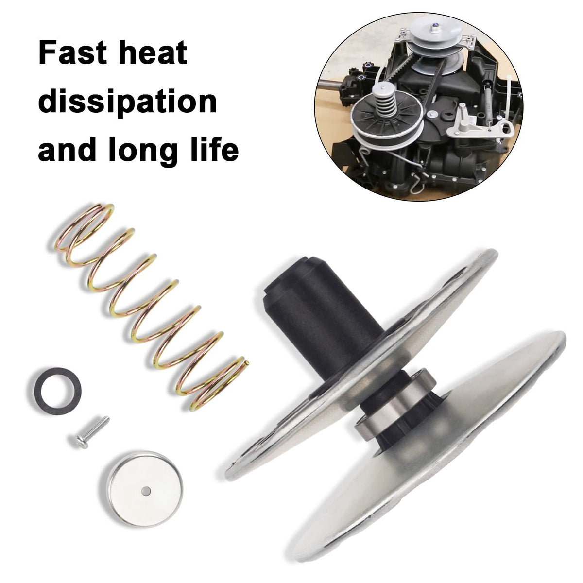 Q: What features does the MWEDP MIA12482 kit offer?A: This kit includes a spring, variator pulley, and screw kits for easy installation. It is designed for high thermal conductivity, improving heat dissipation and overall working efficiency of your lawn mower.