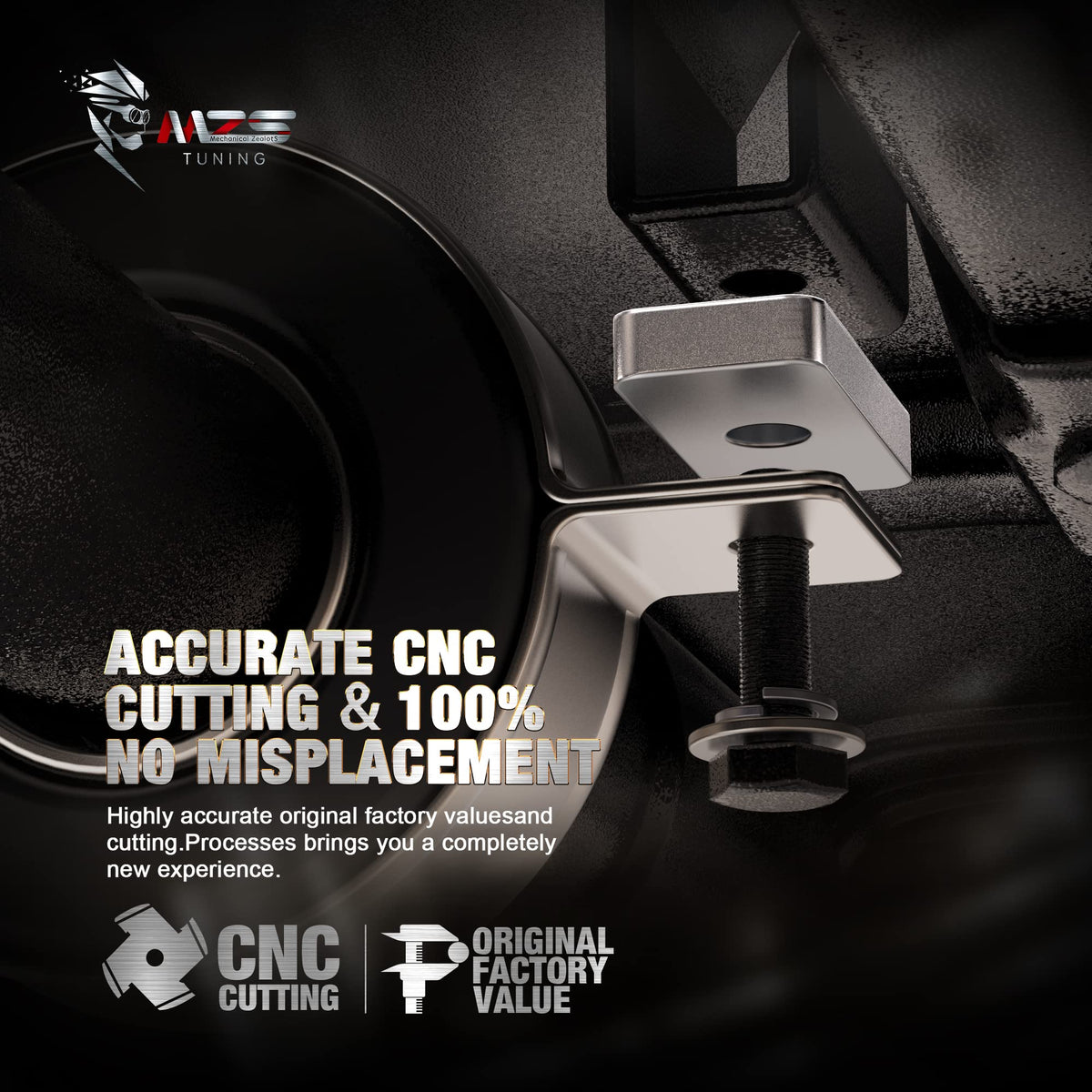 Q: How is the installation process for the MZS spacer kit?A: The installation of the MZS driveshaft spacer kit is straightforward and designed as a bolt-on application, requiring no special tools, making it accessible for most users.