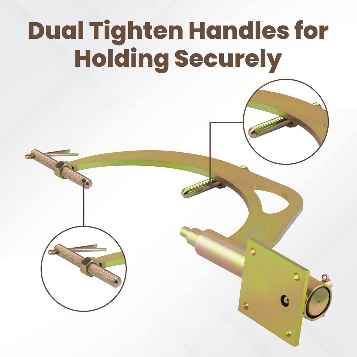 Q: How does the 360° swing feature work on this transmission holding fixture?A: The 360° swing feature allows for complete rotation of the transmission, making it easier to access all angles for maintenance or repair work. This is facilitated by the dual tightening handles that secure the fixture in place while allowing smooth movement.