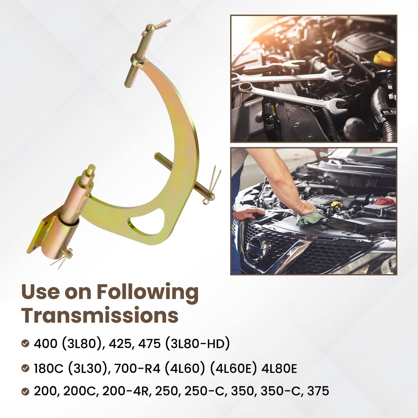 For Use On These Transmissions: 180C (3L30), 200, 200C, 200-4R, 250, 250-C, 350, 350-C, 375, 400 (3L80),&Nbsp; 425, 475 (3L80-Hd), 700-R4 (4L60) (4L60E) 4L80E Feature: 1.Bench Mounts With Base 2.Allow 360 Swings 3.Dual Tighten Handles 4.Lifting Ring Provids For Easy Use 5.Allows Work Comfort At Any Angle And Easy Access To Valve Body. 6.The Universal Transmission Holding Fixture Makes It Easy To Tear Down By Allowing Free Use Of Your Hands 7.When It Supports The Transmission Because Of The Mounting Lugs On A Variety Of Transmissions.&Nbsp; Notice: 1. Please Check Your Transmission Model Before Purchasing 2. Please Check Our Product Detail Page For Specific Information 3. If You Have Any Questions, Please Feel Free To Contact Us And We Will Do Our Best To Answer You 4.The Product Details Page Has The Specific Size Of The Product, Please Refer To