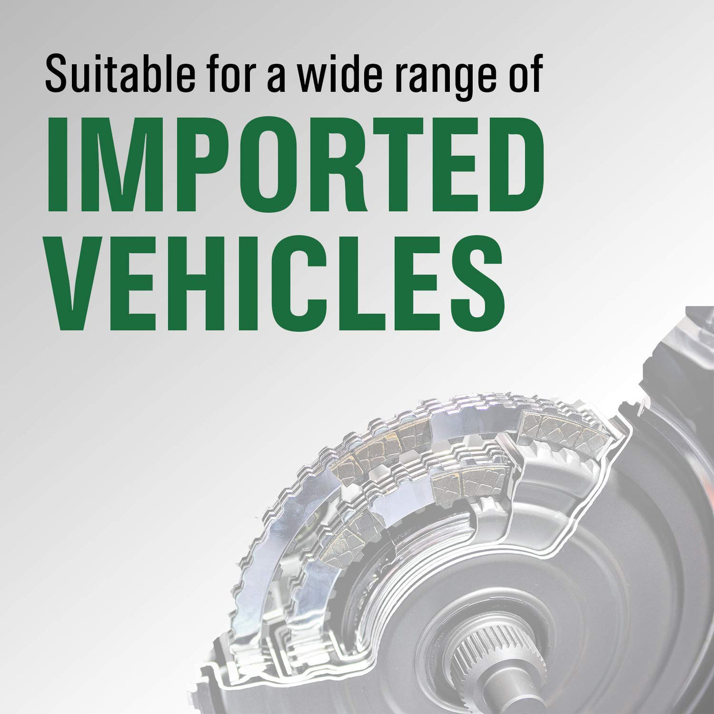 Q: What vehicles are compatible with Castrol Transmax Import Multi-Vehicle Automatic Transmission Fluid?A: Castrol Transmax Import Multi-Vehicle Automatic Transmission Fluid is designed for use in most imported vehicles, including popular brands such as Honda, Toyota, and Nissan. It meets or exceeds the requirements for General Motors DEXRON-IIIH, Ford MERCON V, and other specifications, making it suitable for a wide range of automatic transmissions.