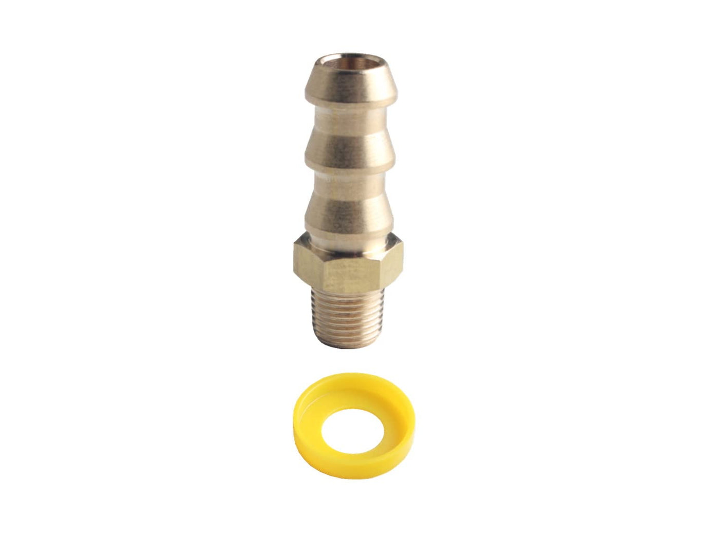 Q: What materials is the DEWHEL Transmission Fluid Fill Adapter made of?A: The DEWHEL Transmission Fluid Fill Adapter is made of brass, which ensures durability and improved design for better hose grip, making it a reliable tool for changing transmission fluid.