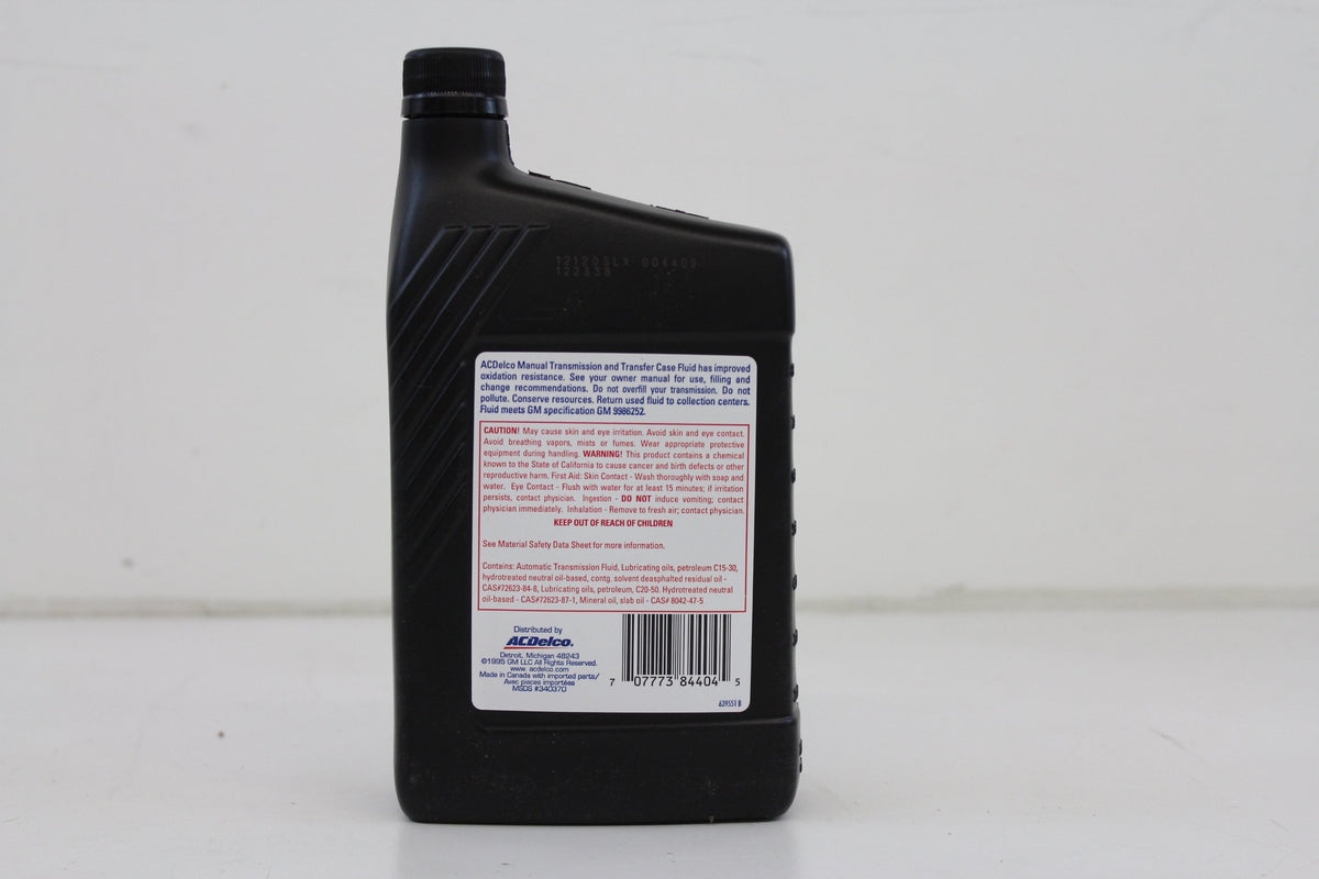 Q: Can I use this fluid in my transfer case?A: Yes, Genuine GM Fluid 88861800 is suitable for use in transfer cases of compatible vehicles. Its formulation provides excellent lubrication and protection, helping to prevent wear and tear in both manual transmissions and transfer cases.