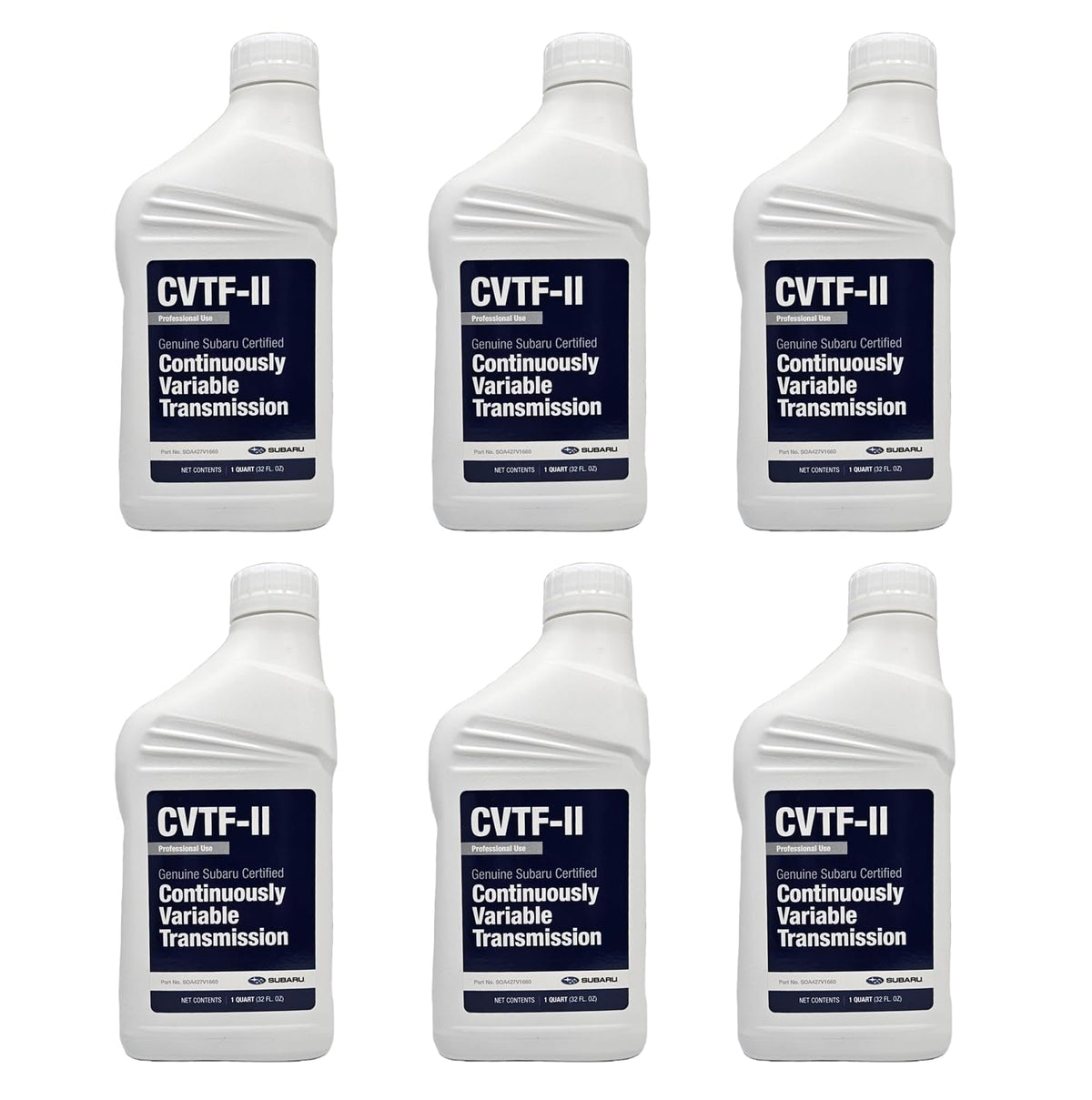Our package will include 6 quarts of genuine Subaru CVTF-II fluid . CVTF Fluid SOA427V1660 x6 for use in CVT transmissions only. This is a green fluid. Fits: 2013-2019 Crosstrek with CVT NON HYBRID, 2014-2016 Crosstrek CVT HYBRID, 2014-2023 Forester 2.5 Naturally Aspirated with CVT NON TURBO (also not for 2022 wilderness), 2010-2019 Legacy 2.5 FB25 with CVT, 2010-2014 Legacy 3.6 with CVT, 2010-2019 Outback 2.5 FB25 with CVT, 2010-2014 Outback 3.6 with CVT, 2012-2023 Impreza 2.0 non turbo with CVT.