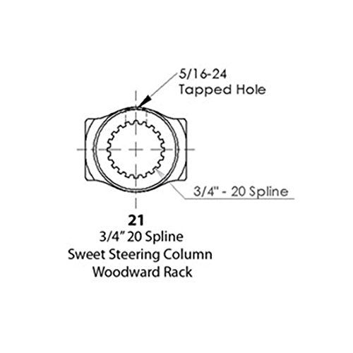 Q: What is the compatibility of the Sweet Mfg 401-50621 U-Joint?A: The Sweet Mfg 401-50621 U-Joint is designed to fit various steering applications requiring a 3/4 in Smooth Bore to 3/4 in-20 Spline connection, making it suitable for many custom and aftermarket steering systems.