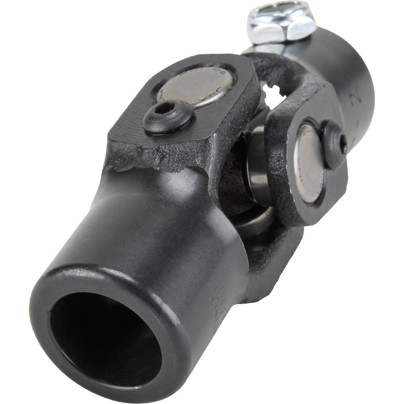 Q: What materials are used in the construction of this U-Joint?A: This U-Joint is constructed from durable steel, ensuring strength and longevity under typical usage conditions, while the black finish provides additional corrosion resistance.