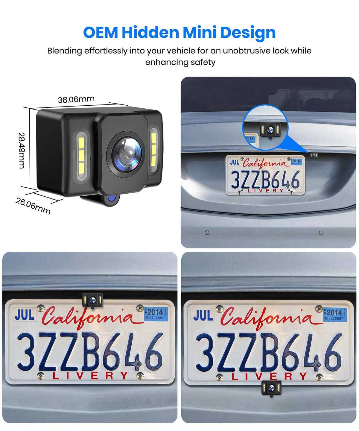 Factory MINI OEM-look: With a sleek, OEM-style mini design, the car backup camera integrates seamlessly into your vehicle’s exterior, ensuring safe reversing without compromising the vehicle's aesthetics.