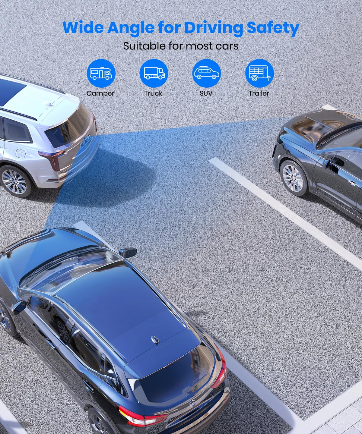 Wide Angle: Featuring a 6-layer glass wide-angle lens, the back up camera provides an expansive view, significantly reducing blind spots and enhancing safety. This broad coverage makes reversing easier and more secure.