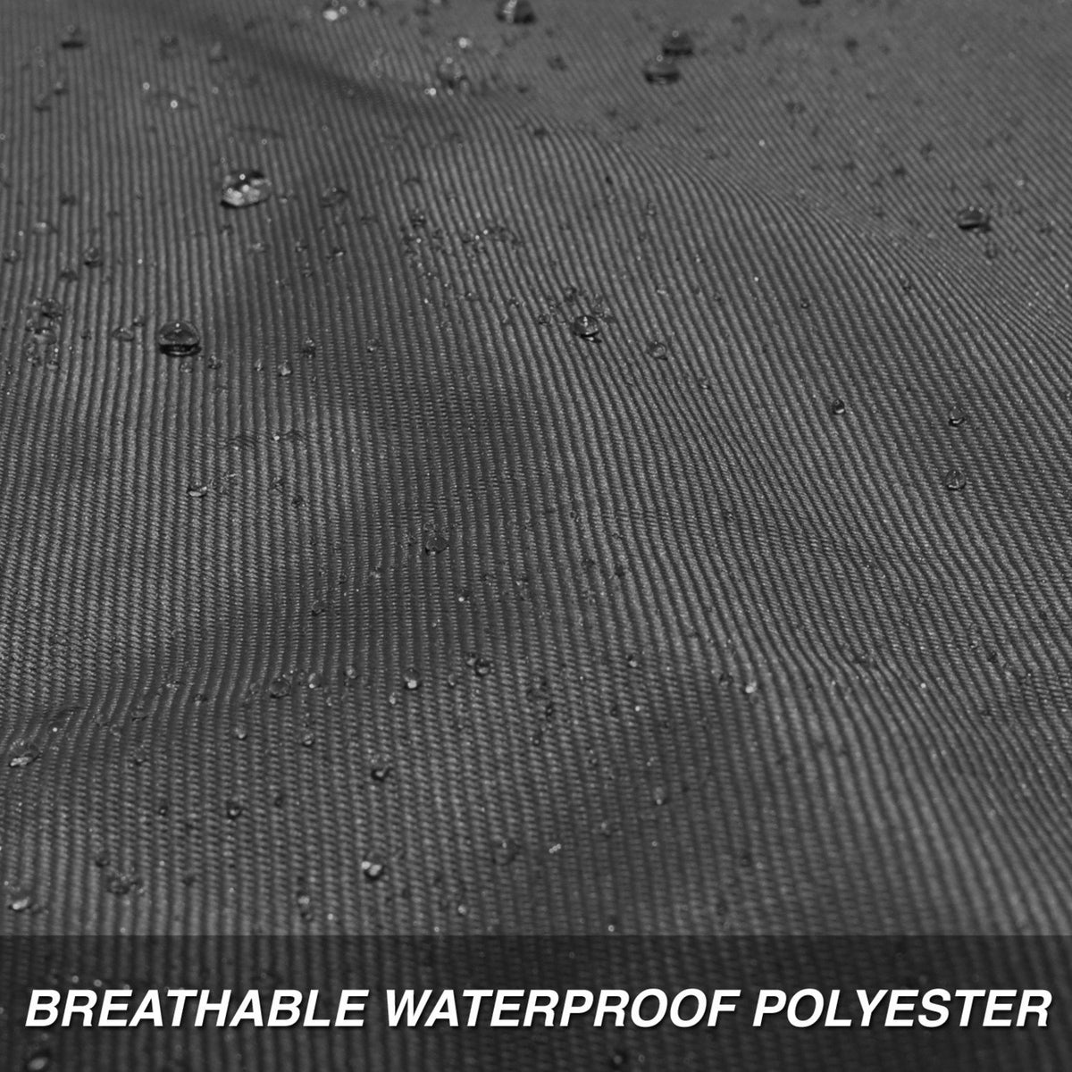 Q: Is the Budge Sportsman Motorcycle Cover waterproof?A: Yes, the Budge Sportsman Motorcycle Cover is made from 100% waterproof polyester, ensuring that your motorcycle stays dry and protected from rain and moisture.