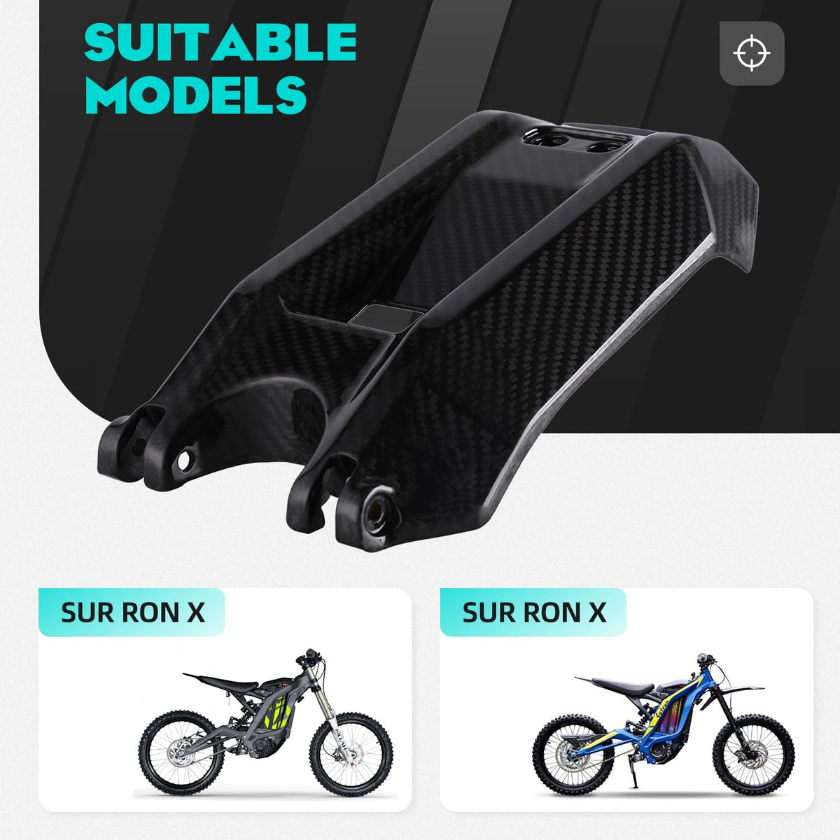Q: How does the carbon fiber battery cover protect the battery?A: This battery cover effectively reduces the risk of corrosion and damage from collisions, enhancing the longevity of your Sur Ron's battery.