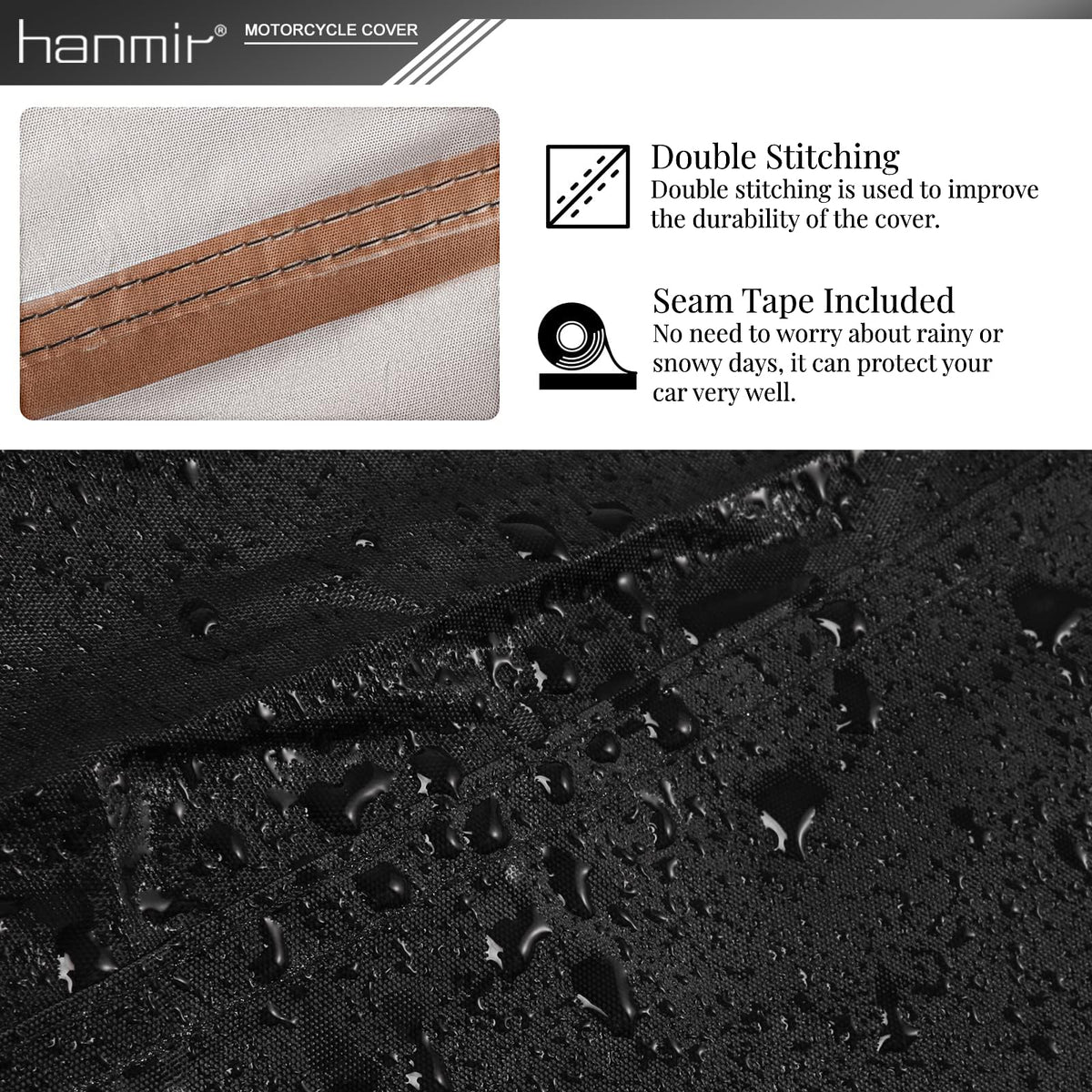 Good Quality Material: The motorcycle cover is made of premium quality 300D Oxford fabric material for added strength and durability. With PU and UV coating inside, it can protect the motorcycle from dust, rain, UV rays, and other pollutants. | Double Stitching Design: This motorbike cover has double-stitched seams and seam tape and the back is designed with polyurethane paint. It can provide excellent UV protection and prevents wind from entering and flattening while minimizing rain, snow, dust, debris, and friction. | Careful & Practical: The product has four 6.9-inch reflective warning strips on the front and back, making it safer at night, in foggy weather, in rain, etc. This package also comes with a storage bag. You can use the storage bag to organize the motorcycle cover, it will not take up space and keep the motorcycle cover clean. | Universal Fit: Our cover fits most on and off-road standard-sized motorcycles. 4XL-116'' x 43'' x 55'', ideal for Harley Davidson, Honda, Suzuki, Kawasaki, Yamaha, and more. (Please measure your motorcycle before ordering.) | Satisfactory Service: Please buy with confidence, if there is any problem, please feel free to contact us, we will provide service within 24 hours. If for any reason you don't like this vehicle rain cover, please feel free to contact us. We will provide you with a satisfactory solution.