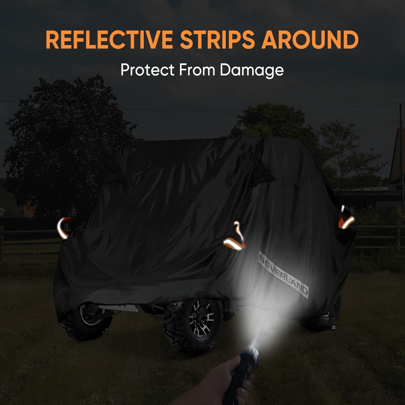 Q: Is the NEVERLAND UTV cover waterproof and weather-resistant?A: Yes, the NEVERLAND UTV cover is made from heavy-duty Oxford cloth materials and features double-stitched seams, making it waterproof and resistant to various weather conditions, including rain, snow, and sun.