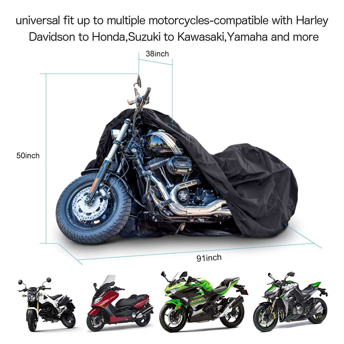 New Generation Motorcycle Cover ! XYZCTEM All Weather Black L Large-Heavy Duty Waterproof Outdoor Protects Fits up to 91 inch for Harley Davidson, Honda, Suzuki,Yamaha and More