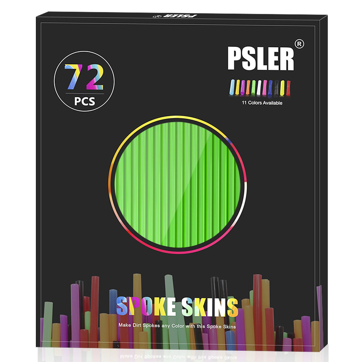 Q: What color options are available for the PSLER Spoke Skins?A: The PSLER Spoke Skins are available in 11 vibrant colors, including Dark Green, Blue, Sky Blue, Pink, Yellow, Dark Yellow, Black, White, Red, Orange, and Purple, allowing you to customize your motorcycle's appearance.