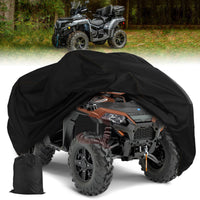 Q: How does the QYMOTO ATV Cover protect against weather conditions?A: This ATV cover offers all-round protection with its heavy-duty 420D Oxford fabric, which is waterproof and windproof. It features an elastic band at the bottom to secure the cover against wind, and it shields the ATV from UV rays, rain, and snow.