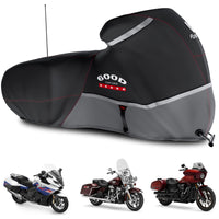 Q: Is this motorcycle cover compatible with Harley Davidson touring models?A: Yes, this cover is designed to fit a variety of touring models including popular Harley Davidson bikes such as the Road King, Road Glide, Street Glide, Electra Glide, and Low Rider-ST.