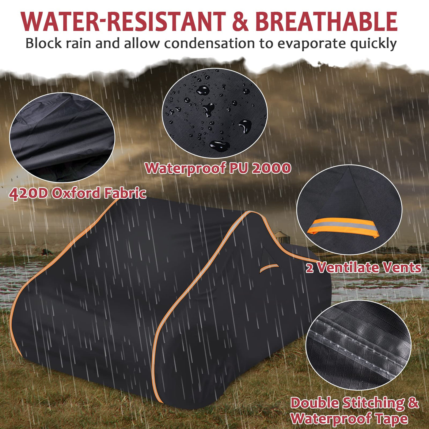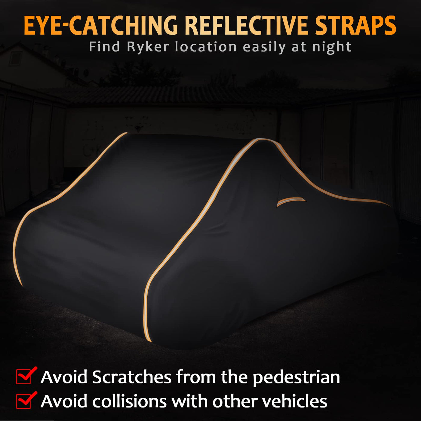 Q: How does the cover stay secure during high winds?A: The StarknightMT Ryker Cover includes thick windproof webbings, an adjustable elastic hem, and extra windproof buckle straps to prevent it from blowing off during strong winds or rainstorms.