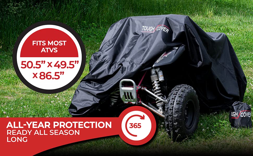 Tough Cover XL ATV Cover, Heavy Duty 600D Marine Grade Fabric, Quad Cover for Kawasaki, Honda, Polaris, Yamaha, and More. Protec