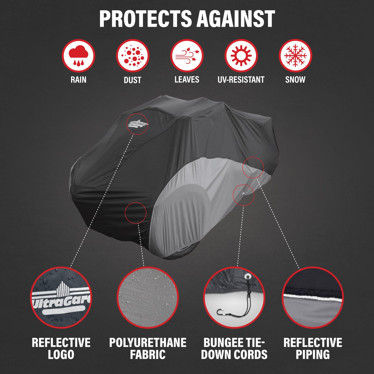 Q: What materials is the UltraGard cover made from?A: The UltraGard cover is crafted from durable nylon, providing excellent weather resistance and protection against dust, dirt, rain, and sun rays.