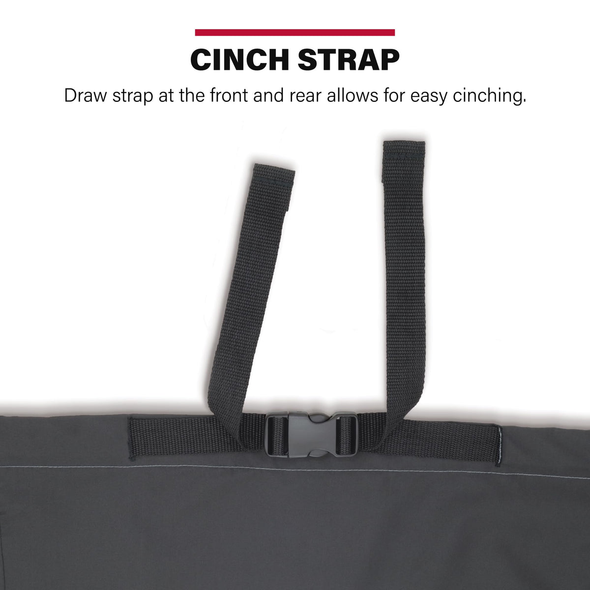 UltraGard powersports covers brings their knowledge and sewing skills to the Polaris Slingshot with unparalleled value with their Classic Series Cover. Fits all models of Slingshot including the latest 2021 offering. This outstanding cover has UltraGard interlocking double stitched seams for durability and high visibility logo and reflective accent strip that UltraGard Classic Covers are known. Its black over charcoal design is a great compliment to the fast lines of the Slingshot. Includes bungee cord at hem, zippered storage pouch and air vent flaps to allow warmer air to escape. Includes liners for windshield, roll bar and tail fin. Draw strap front and rear allows the hem to be cinched tight with a quick release buckle.