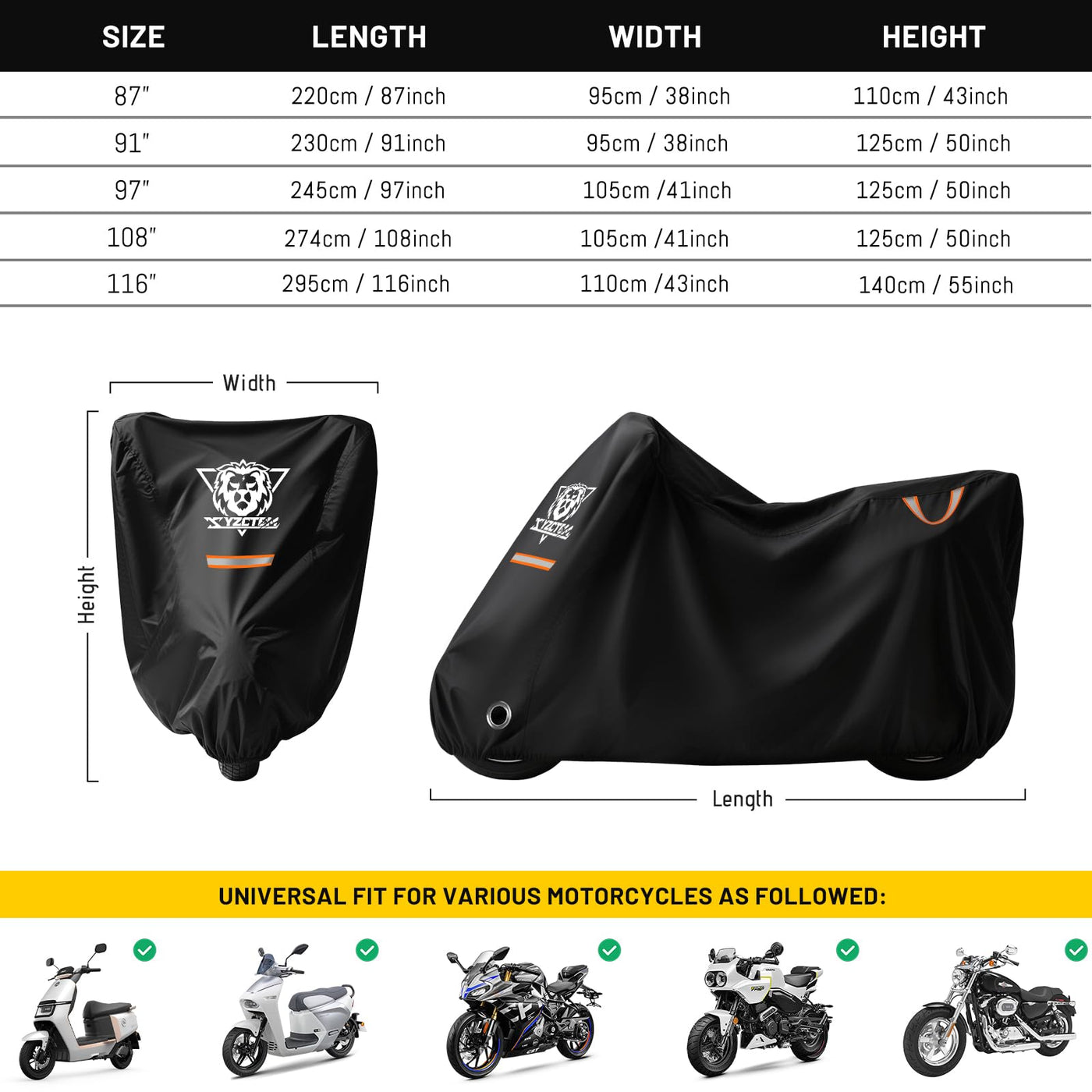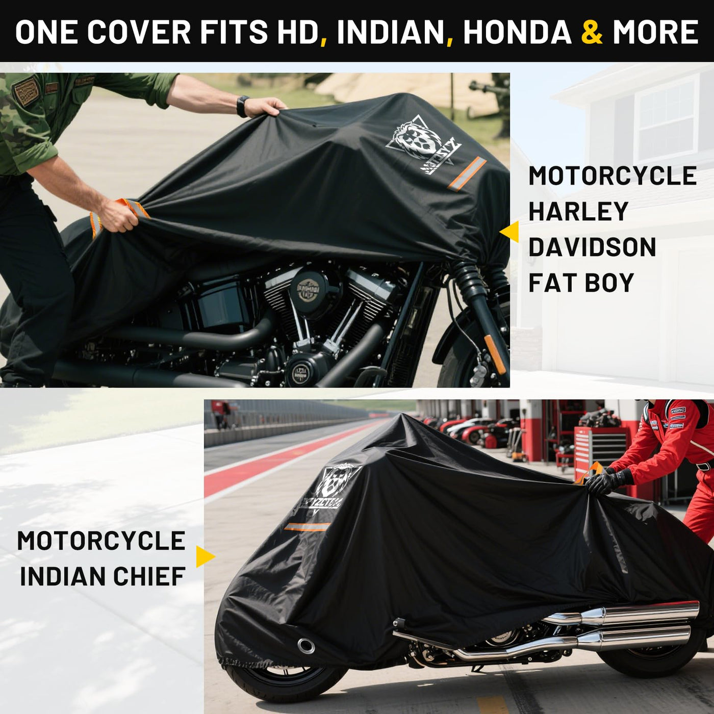 Xyzctem Motorcycle Cover Waterproof Outdoor All Season Protection Motorcycle Storage Night Reflective Handles With Lock-Holes St