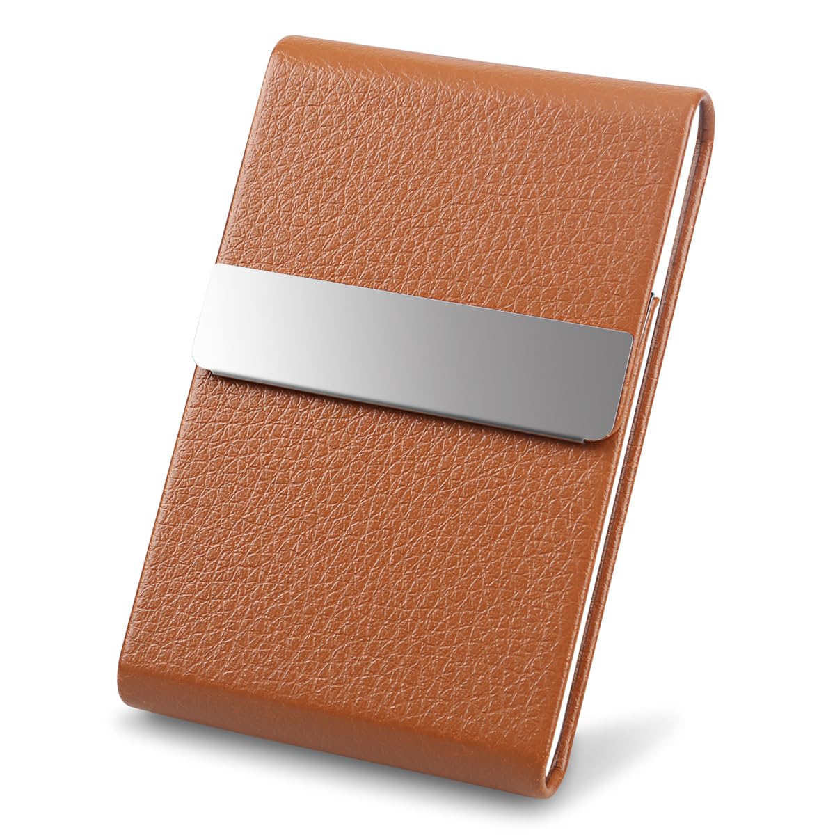 DMFLY business card holder make your business success. > > > Fashionable and useful our card wallet boasts an elegant design that is smooth and elegant. > > > Magnetic shut easy to take out the business cards when you meet with a customer. Let hard to take out cards issue get away from you. > > > Pu leather + stainless steel sturdy and use longer due to leather covering fingerprint issue gone keep the card case clean. > > > Our card holder not only for business card also for credit cards note cards and personal cards etc. > > > Our slim business card holder high capacity can holds plenty of cards even in thick card stock- depending on your card thickness. Pocket size easy to carry. > > > Fingerprint issue gone: Compare to pure stainless steel card case due to our metal stainless steel card holder is leather covering fingerprint issue is virtually eliminated. So if you buy it it worth your money. Still have concerns? No problem we offer a lifetime warranty with any product quality question. You can choose full money back or a new replacement. Always wait and see it is better to try. Buy it for your friends family or colleagues as a gift. Perfect purse size and classy looking --- Highly rated from customers.