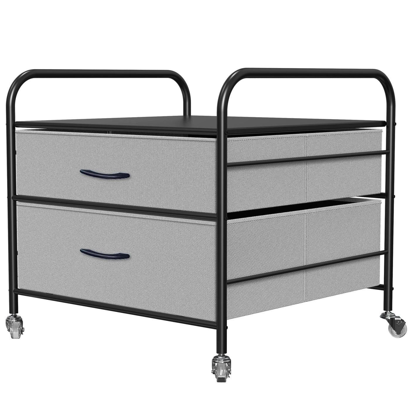DHMAKER Fridge Stand with Storage 2 Drawer Organization Fridge cart for Mini Fridge Black Frame with grey Drawers Rolling cart with Swivel Wheels-New