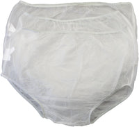 Made to wear over disposable or cloth diapers, these pants provide an extra level of protection to help prevent embarrassing situations. Generously sized vinyl incontinence underpants slip completely over underwear for allaround protection, day or night. Waist and legs are elasticized for a smooth fit without binding or irritating skin. Set of 3 is machine washable. Specify by waist size: (213Medium; 2634), (214Large; 3442), (215XLarge; 4250) or (216XXlarge; 5058).