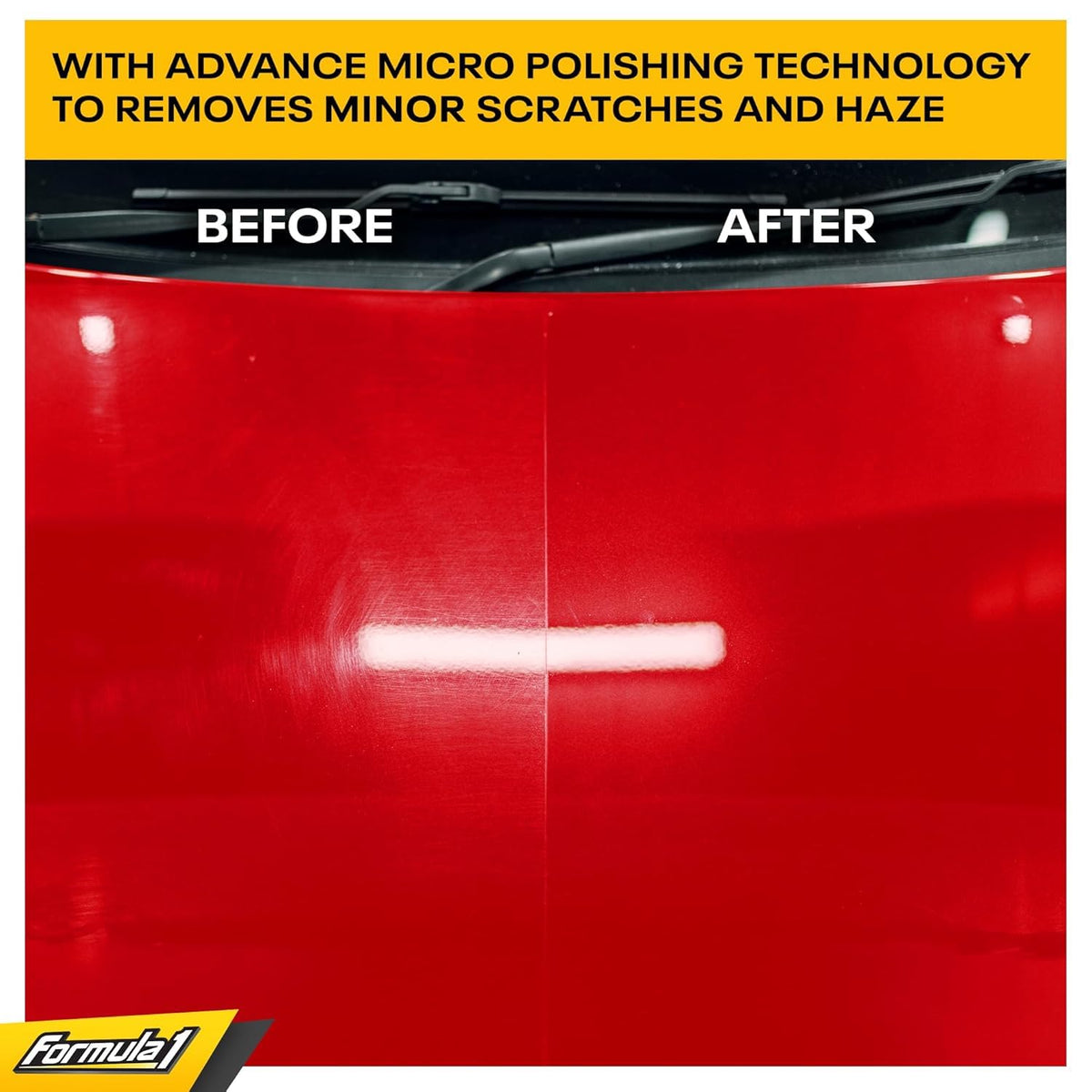 Q: Can Formula 1 Carnauba Car Wax remove scratches and haze?A: Yes, the advanced micropolishers in Formula 1 Carnauba Car Wax gently remove light scratches and haze from the clear coat, enhancing your car's color and providing a glossy finish.