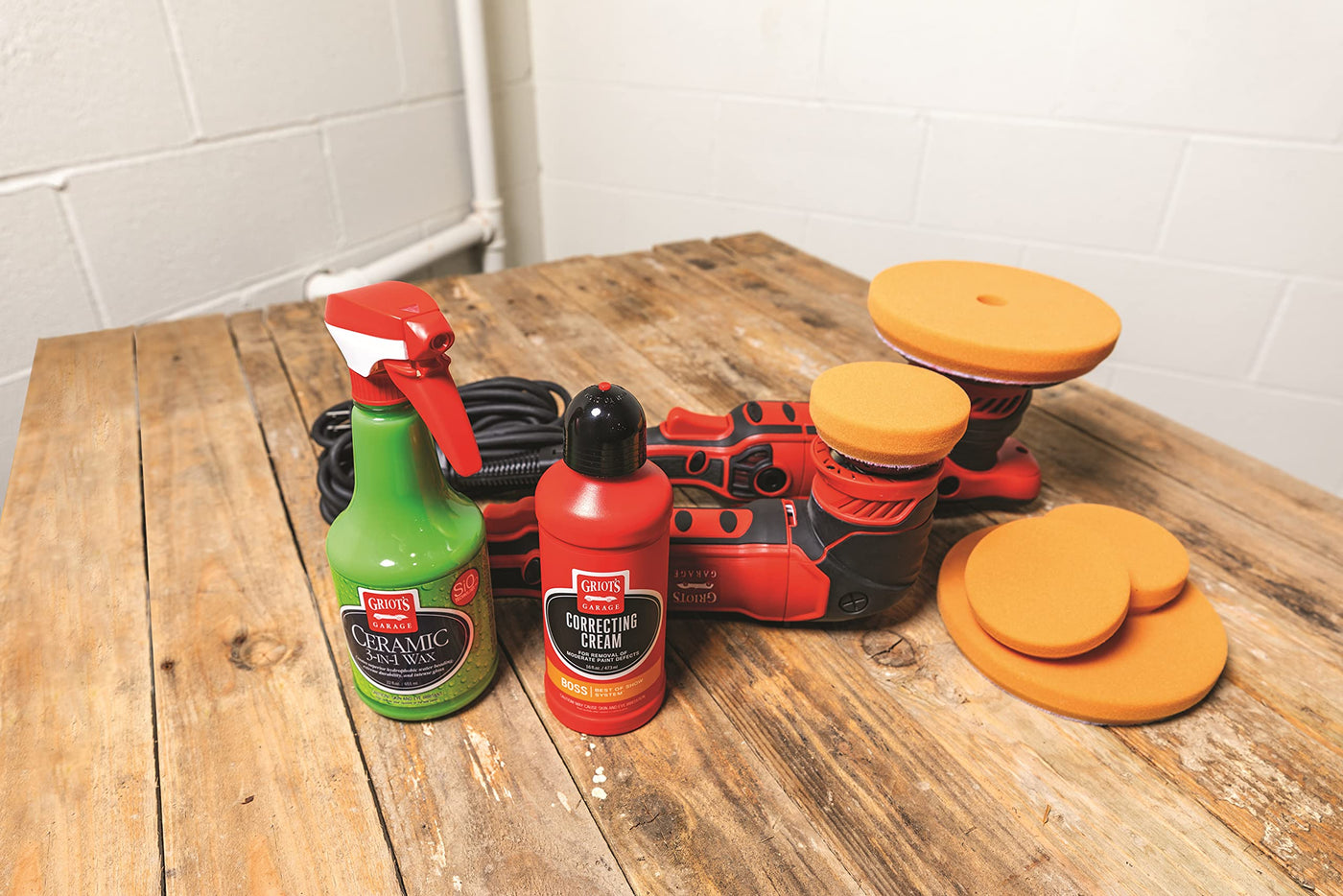 Q: What is included in the Griot's Garage G8 & G9 Orbital 2-Step Ceramic Kit?A: The kit includes the G9 Random Orbital Polisher, G8 Mini Random Orbital Polisher, BOSS Correcting Cream, Ceramic 3-in-1 Wax, two 6.5" Orange Correcting Pads, three 3" Orange Correcting Pads, and a 25-foot quick-connect power cord.