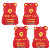 Happy Wax Summer Evenings Hanging Car Cub Air Freshener - Scented and Infused with Natural Essential Oils - Cute 4-Pack