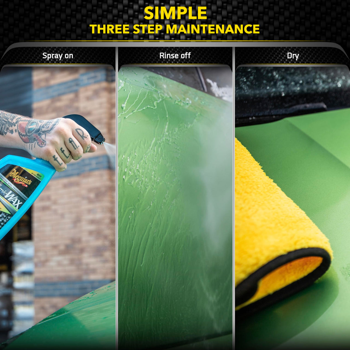 Q: How should I apply this spray wax for the best results?A: For best results, wash your vehicle thoroughly and rinse off the soap. While the surface is still wet, spray Meguiar's Hybrid Ceramic Spray Wax evenly over the paint and follow with a strong stream of water to help spread the wax. Then, dry your vehicle with a microfiber towel.