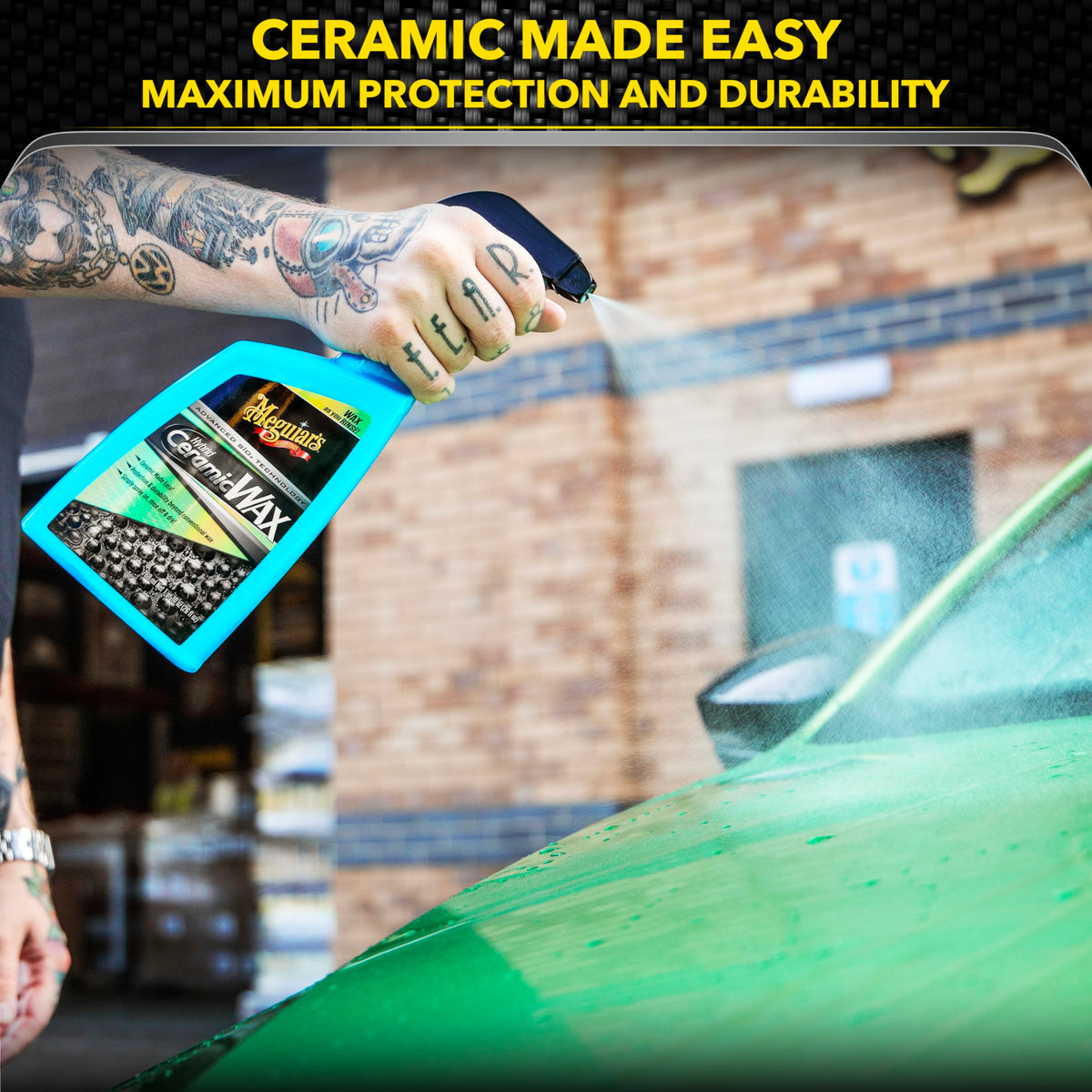 Do You Want An Easy To Use Car Wax That With Cutting-Edge, Sophisticated Technology That Delivers The Latest In Protection? Meguiar’S® Hybrid Ceramic Wax Is The Answer. With All-New, Advanced Si02 Hybrid Technology You Get Ceramic Protection That’S So Easy To Use, You Can Actually Wax Your Paint As You Rinse Off Your Car! After Washing & Rinsing Off The Soap, Simply Spray On Meguiar’S Hybrid Ceramic Wax And Then Follow That With A Second Rinse With A Strong Stream Of Water. This Final Rinse Helps To Spread And Lay Down The Wax Evenly For You. Dry Your Vehicle Like You Would Normally With A Quality Microfiber Drying Towel, Like Meguiar’S® Microfiber Water Magnet™ Drying Towel. There’S No Rubbing Or Buffing And There’S No Curing Time. You’Re Left With Ceramic Protection And Durability Well Beyond Conventional Wax And Extreme Water Beading Protection. Conventional? No. Sensational? Yes! It’S Ceramic Made Easy!