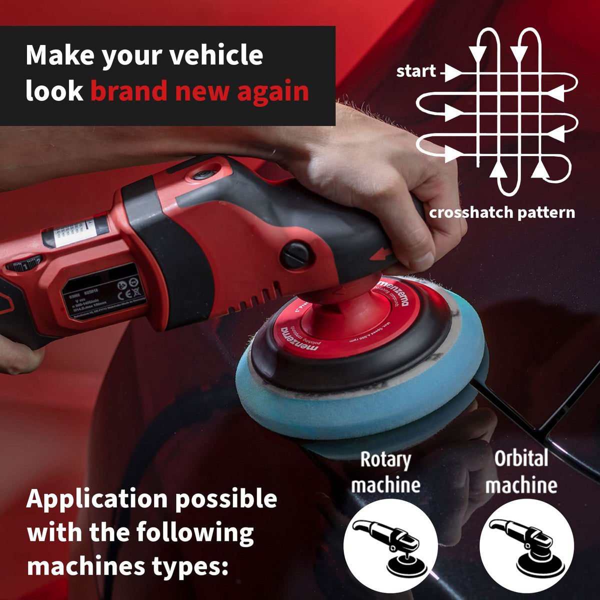 Descriptionmake New From Old With Menzernacar Polishing Foam Pads 6”Scratches, Sanding Marks, Hologram And Matting Effects – All Of These Imperfections Can Make A Brand-New Car Look Old. The Car Polishing And Buffing Foam Pads Can Help You Buff These Marks Out Of Your Car. Enjoy Your Daily Drives With That Brand New Car Feeling!It Does Not Matter If You Are A Professional Or Not, Detailing A Car Has Never Been This Easy. Start Off By Washing And Cleaning Your Car. Tape Away The Parts You Do Not Want To Touch. Start Buffing The Surface Until Marks And Scratches Are Eliminated. Clean Up With The Control Cleaner And Start Polishing And Waxing Your Car With A Sealing Varnish By Using The Cross-Coating Method . You Can See The Final Results After The According Drying Time. It Takes About 20-30 Minutes To Dry With The Power Lock Sealant. Combine Different Density Foam Pads For The Best Results Possible.4 Densities For 4 Purposes:Red – Heavy Cut Foam Pad For Heavy Duty Buffing With Abrasive Polishesyellow – Medium Cut Foam Pad For Moderate Buffing With Fine Abrasive Polishesgreen – Soft Cut Foam Pad For Finishing The Surface With High Gloss Polishesblue – Wax Foam Pad As A Final Step For Waxes And Sealing Polishes