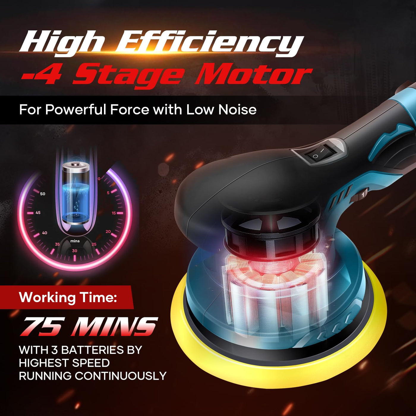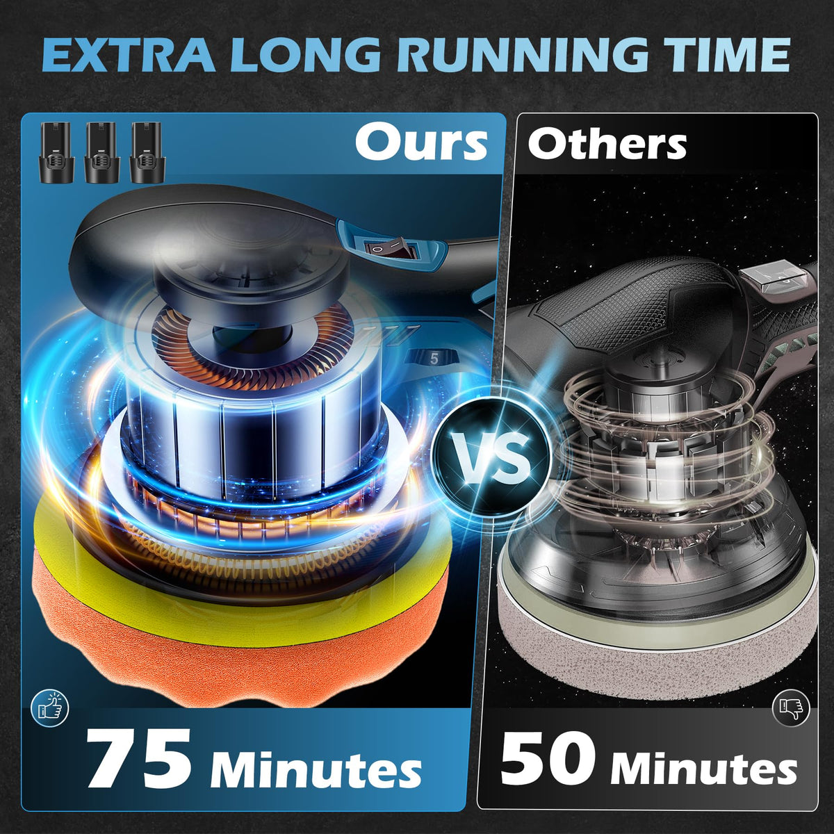 Q: How long does the battery last when using the Saker Buffer Polisher?A: The battery life of the Saker Buffer Polisher depends on the speed setting and the task being performed. With the 12V 2000mAh lithium battery, users can expect extended performance, especially when using the lower speed settings for longer periods.
