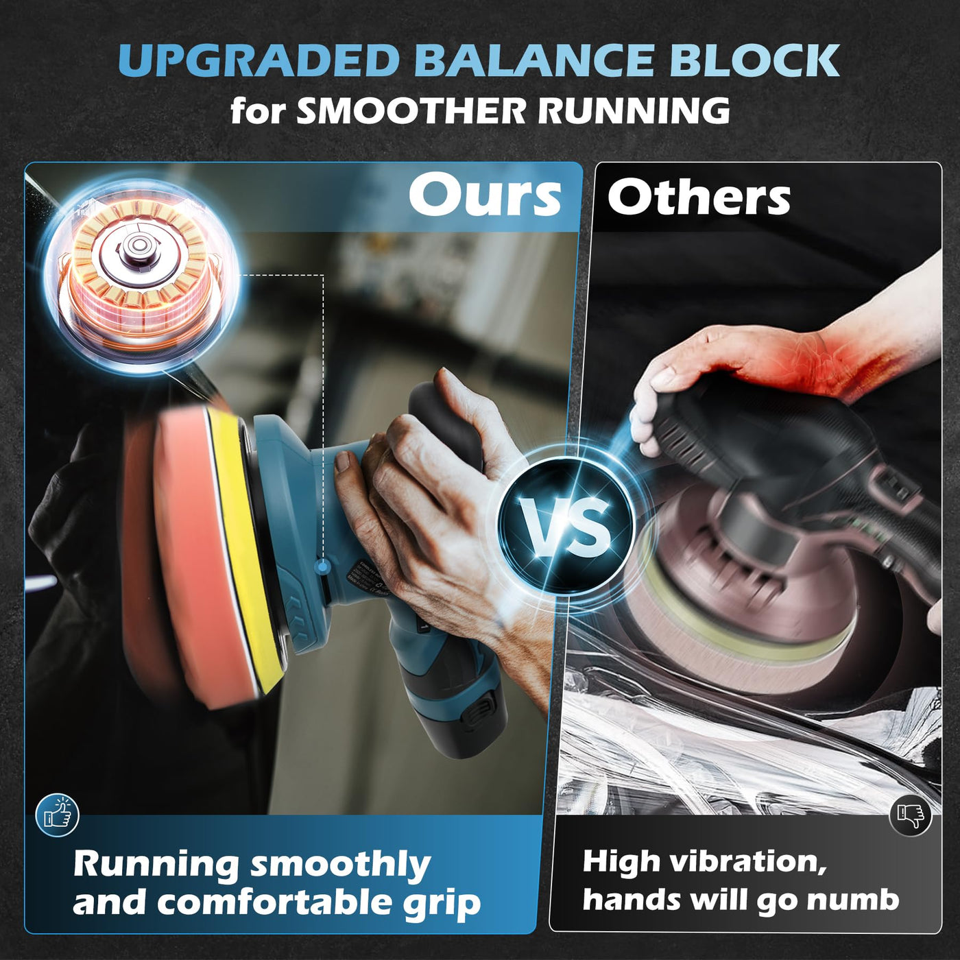 Q: Is the Saker Cordless Car Buffer Polisher safe to use on all car surfaces?A: Yes, the Saker Cordless Car Buffer Polisher is designed to be safe for use on various car surfaces, including paint, plastic, and glass. However, always test on a small, inconspicuous area first to ensure compatibility.