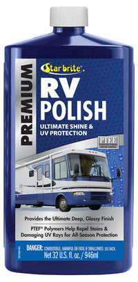 Star brite Premium RV Polish with PTEF is specifically formulated to add full season protection against dirt and grime while also helping to block UV rays that cause fading. It delivers an easy-to-apply, high-gloss, long-lasting shine to all fiberglass, painted surfaces and polished metals. Awarded 'Best Choice' by Practical Sailor consumer reporting magazine in independent testing of the top 26 polishes and waxes in the boating industry. Star brite products are proudly made in the USA since 1973.'