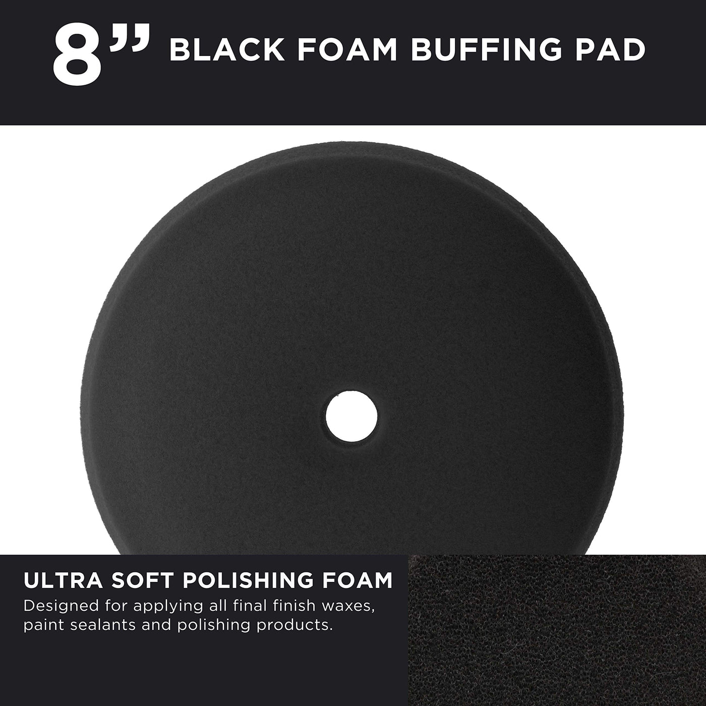 Tcp Global 8'' Black Extra Fine Foam Finishing Grip Pad Final Buff Polish Wax - Hook & Loop