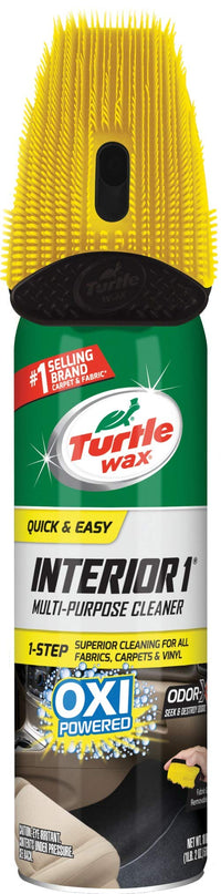 This Turtle Wax Product Easiest All-In-One Solution For Removing Stains And Odors On Every Interior Surface, Including Carpets, Upholstery Fabrics, Plastic And Vinyl. The All-New Patent Pending Micro-Scrub Brush Cleans Deep Into Fabric Fibers, And Detaches For Ultimate Ease Of Use And Deep, Targeted Cleaning. Triple Action Formula Cleans, Deodorizes And Protects Fabric, Vinyl And Carpet.