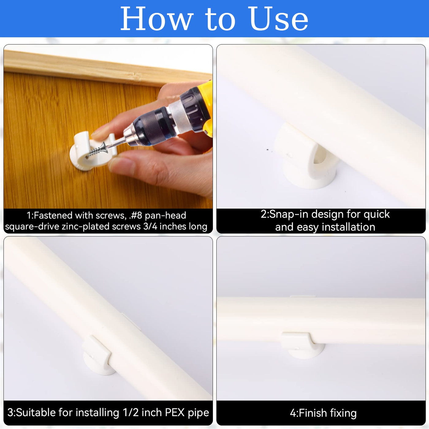 Product size: Fits standard pipe with an OD of 16mm(1/2 inch) and an ID of 12mm. The pex clamps are compatible with PEX pipe, or for 1/2 inch and 1216 PEX-AL-PEX pipe. The diameter of the mounting screw hole is 5mm/0.2inch, suitable for screws above diameter 0.16inch/4.2mm.