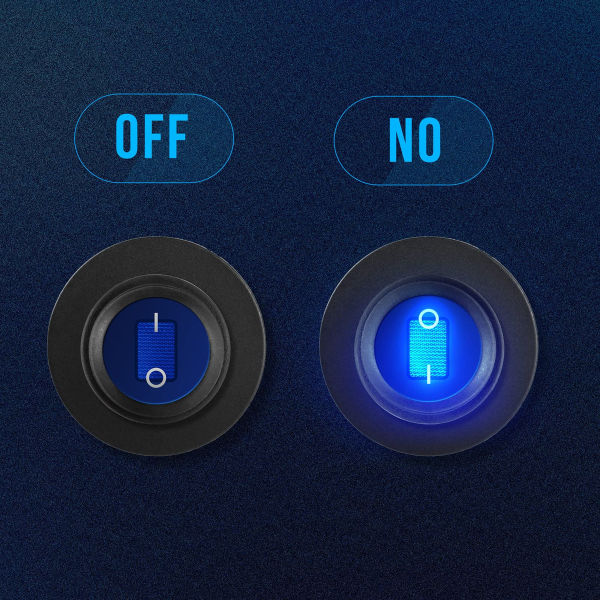 12 Volt Toggle Switch Waterproof 2 PCS, Blue LED Lighted Round Rocker Switch Panel with 6 Hot-Melt Terminals and 20cm Detachable