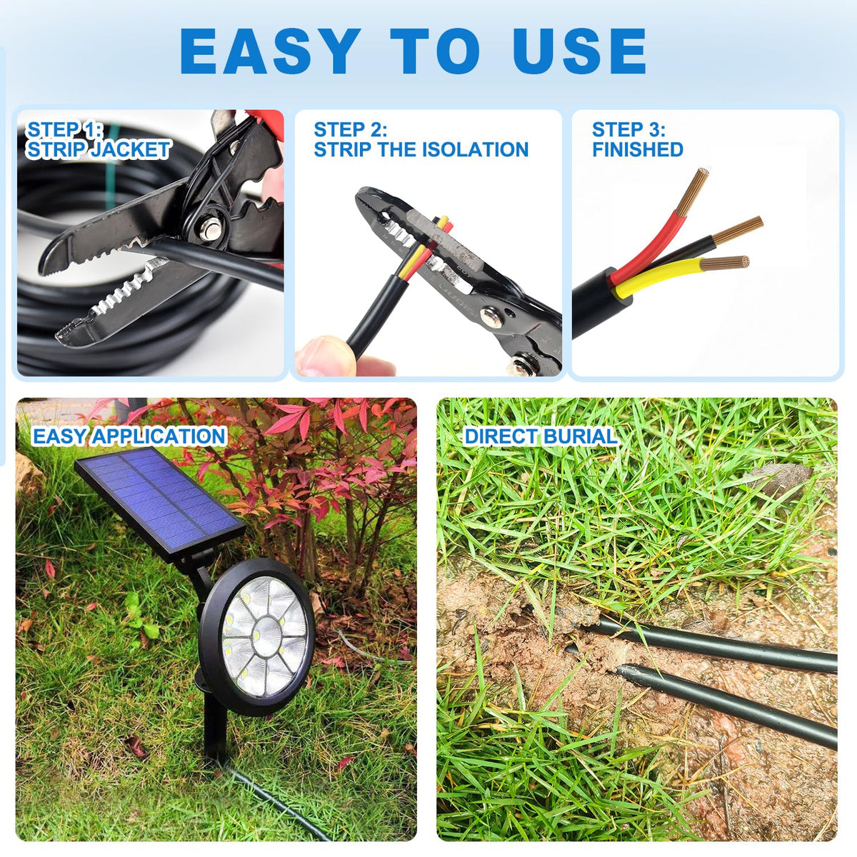 Q: Is this electrical wire suitable for outdoor use?A: Yes, this wire is specifically designed for outdoor use. It features waterproof and UV-resistant properties, making it ideal for landscape lighting, automotive applications, and other outdoor environments.