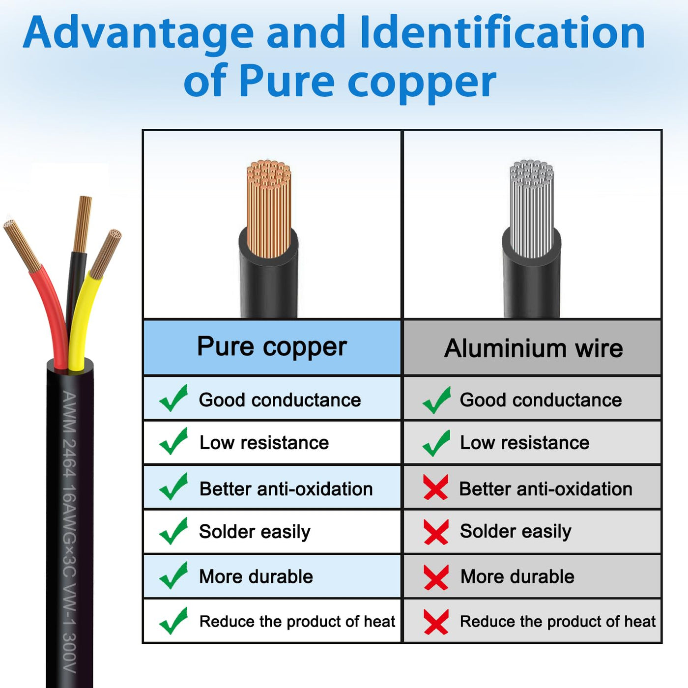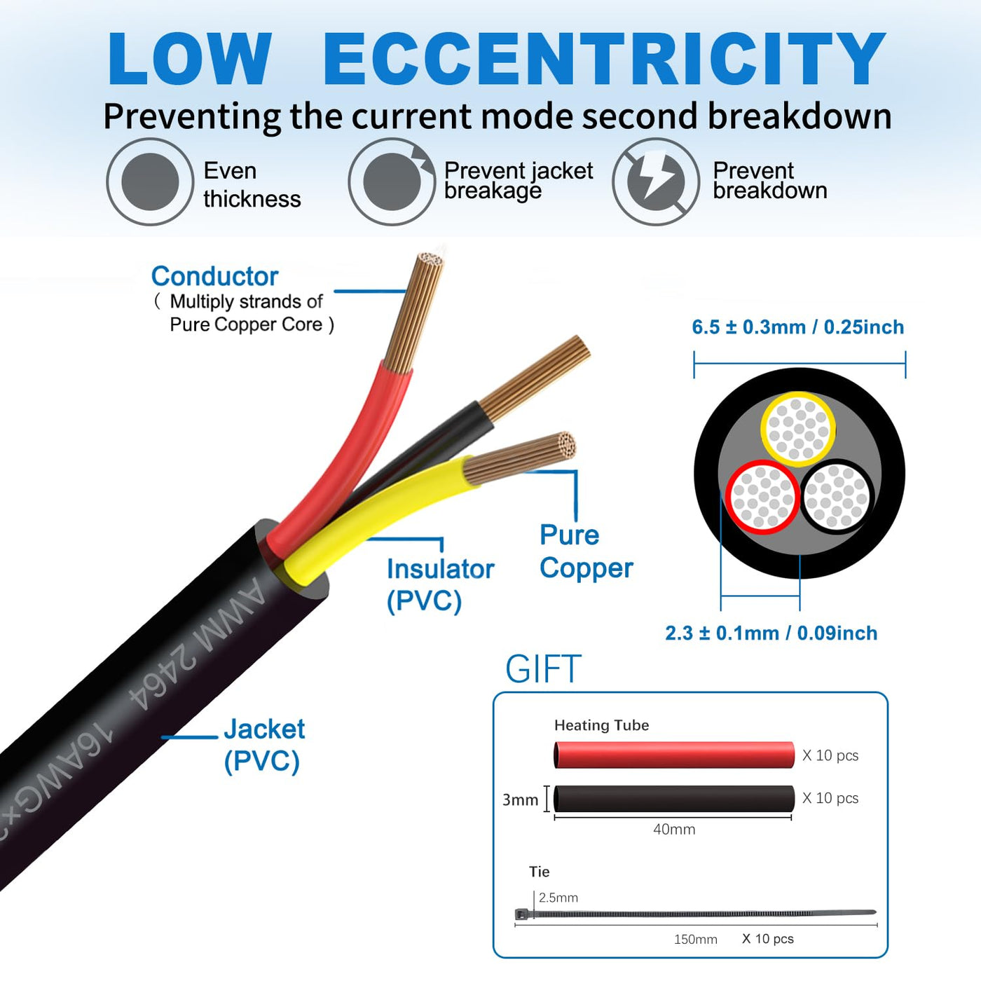16 Gauge 3 Conductor Electrical Wire 50Feet 16/3 Extension Cable Ul2464 Dc5V/12V/24V/300V 16Awg Stranded Pure Copper Low Voltage Wire For Automotive Lamps Strip Waterproof Outdoor Landscape Wire