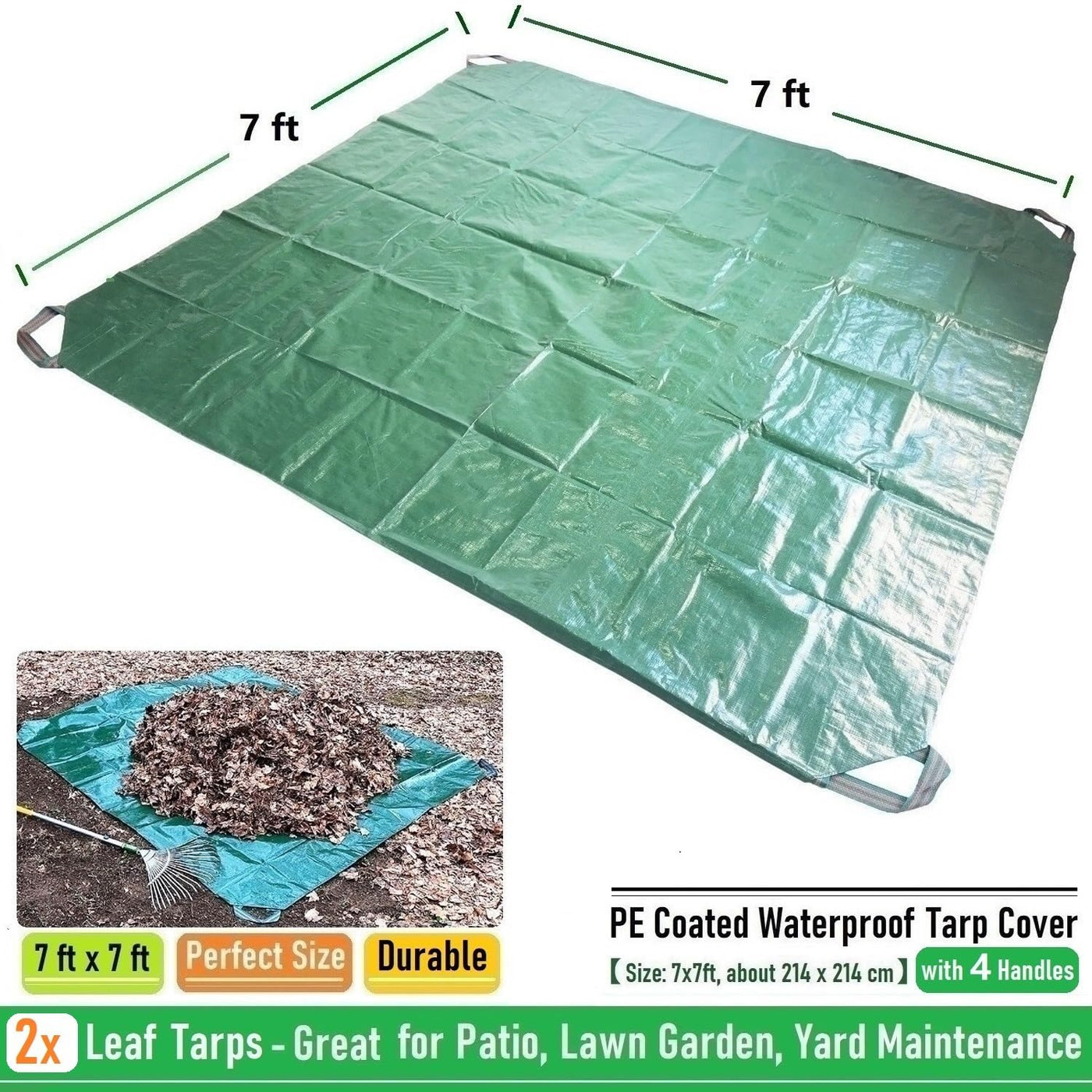 2-Pack 7X7 Ft Waterproof Tarps Yard Garden Leaf Tarp W/ 4 Handles For Sandbox Cover,Outdoor Tarp,Lawn Debris Tarp,Landscape Pruning Tarp,Tent Footprint,Camping Tent Tarp,Patio Firepit Cover,Table Tarp