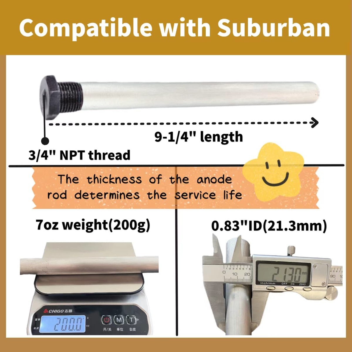 ?Higher Quality?Anode Rod Weighs 7 Ounces And 0.83Inch Diameter.The Service Life Of Anode Rods Of The Same Material Depends On The Thickness Of The Rods, So Heavier And Thicker Rods Also Mean More Durability.