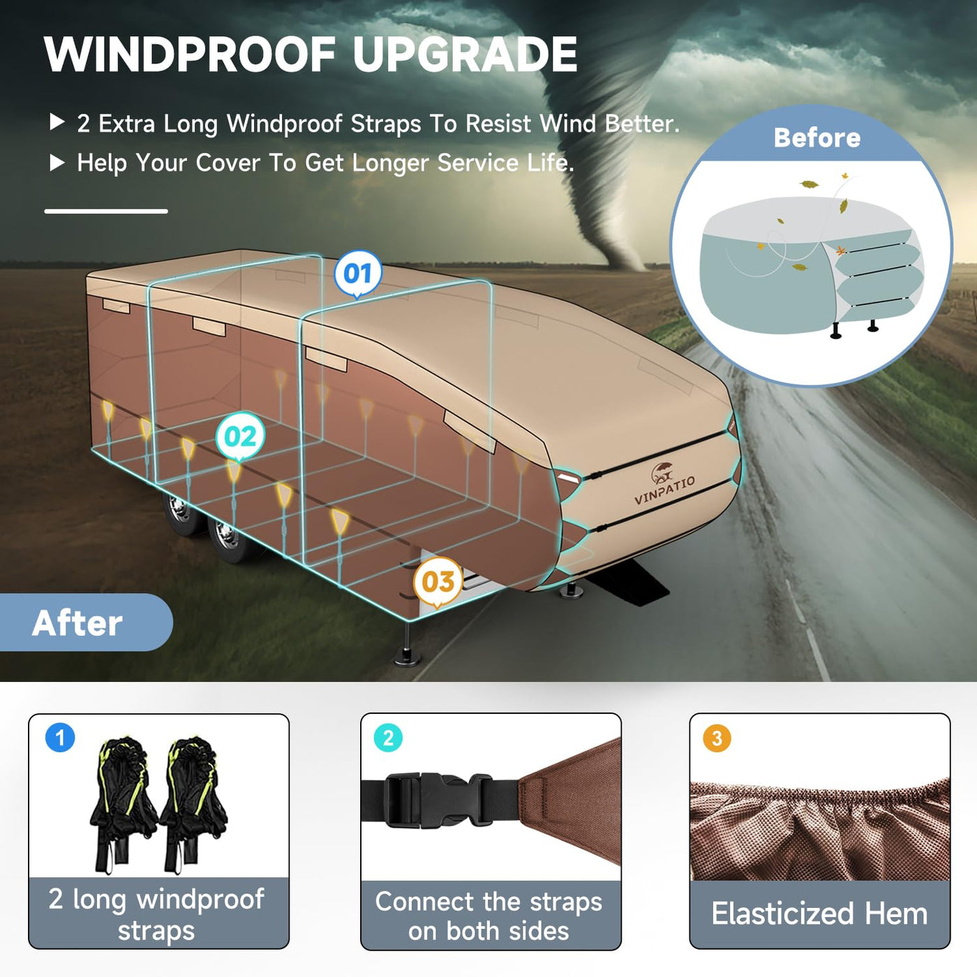 5Th Wheel Cover 300D Oxford Fabric Two Color Design, Fits 37'-40' Rv Heavy Duty 5Th Wheel Rv Cover Anti-Uv Waterproof Windproof,