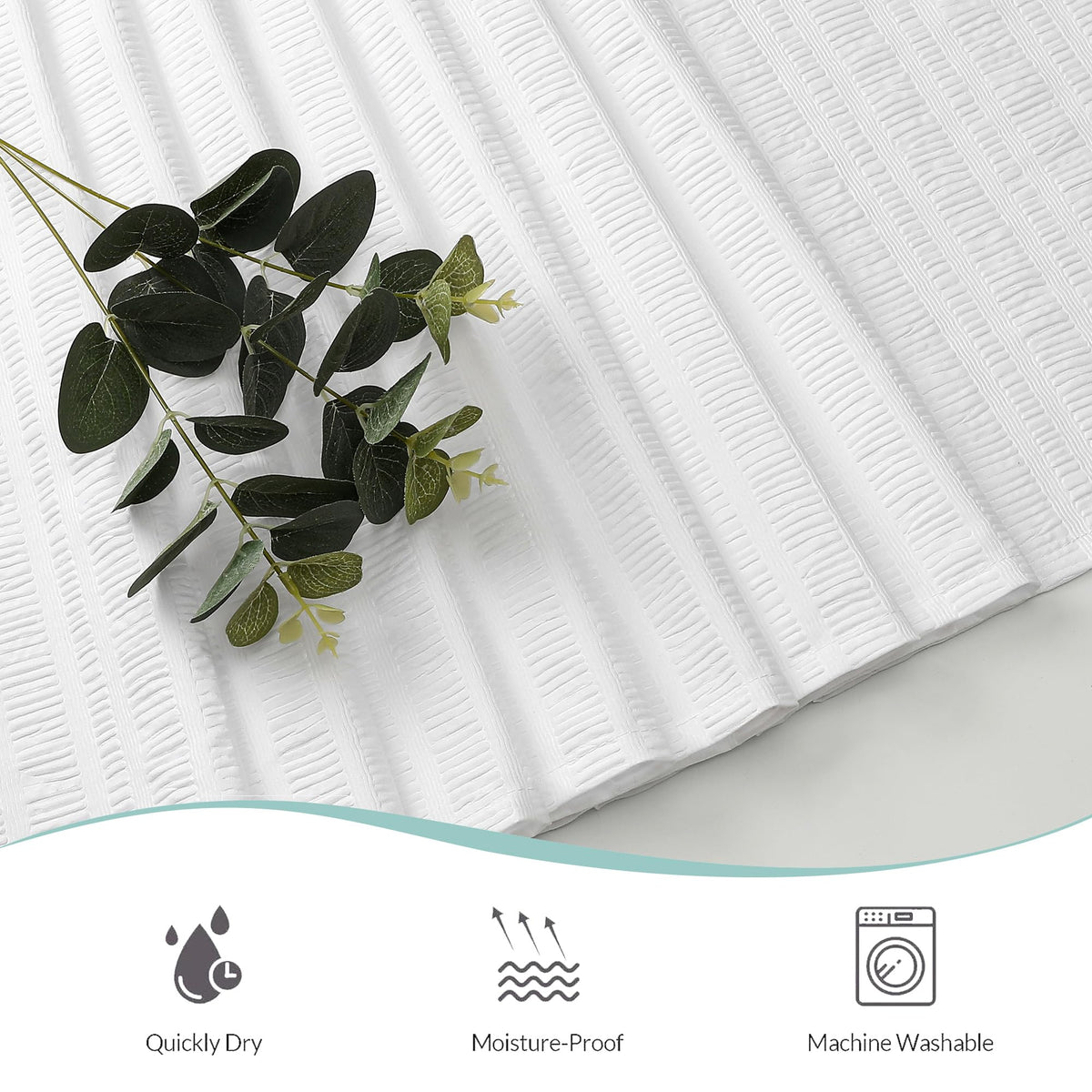Q: How does the 3D embossed texture benefit the shower curtain liner?A: The 3D embossed texture not only enhances the aesthetic appeal of your bathroom but also provides a soft touch and a modern look, creating a hotel-like environment.