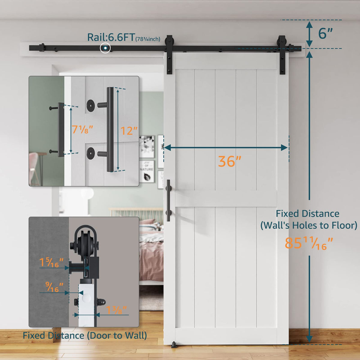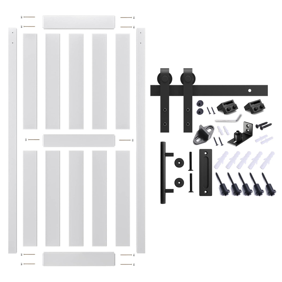 MDF Material: With CARB P2 certification, the main component is pine wood and a small amount of other wood and adhesives are added to extrude the wood slab. High-quality furniture decoration materials, harder than a natural wood door.(DOOR IS UNASSEMBLED) | Easy Installation for DIY Novice: Pre-drilled Door and hardware, with step by step installation manual, professional customer service, any question would be replied within 24 hours. Easy and Meaningful Installation processes with your family. Nice product gift for your home decor! | PVC-Surface: The high-quality white PVC material is tightly bonded to the MDF wood board through high temperature and high pressure, and the layers are laminated to create a tightly bonded, waterproof, and scratch-resistant surface. | Package Includes: 1x Barn Door, Width: 36'' Height: 84'' Thickness: 1 3/8'', H-shape; 1 X 6.6 FT Barn door hardware kit, 1x Barn Door Handle, length: 12''; 1x Barn Door Floor Guide, as the picture shows. | Multiple Application: a sliding door for your house, match with dining room, living room, bathroom, kitchen, storage! Save home space, harmless and easy cleaning.